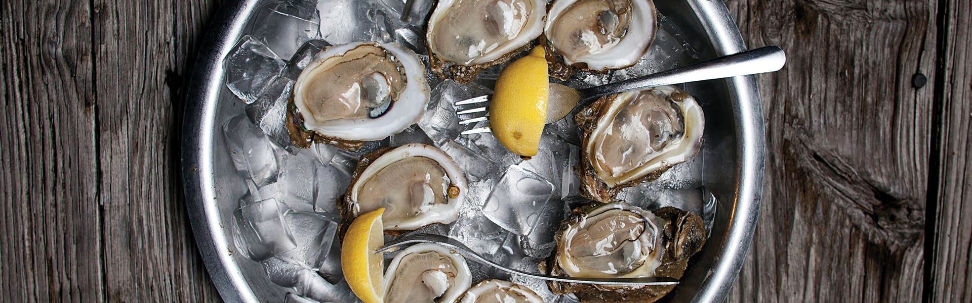 “A cooler’s not enough to bring the temperature down in two hours,” he says. “You need ice. And ice makes oysters open, which dries them out.”