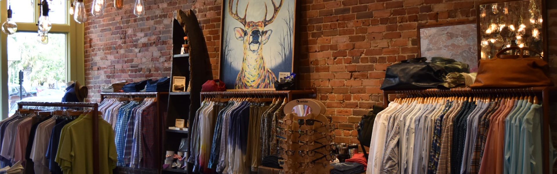 Everything at JJ Cooper is sold with a touch of (masculine) southern charm. Walk into the refurbished late 19th-century two story building housing the store and you’ll see exposed brick walls, a bourbon-filled bar, feather bowties by Charleston-based company Brackish, and fine art depicting iconic southern animals like mallards, dogs, and bucks painted by Bradley Gordon of Oxford, Mississippi.