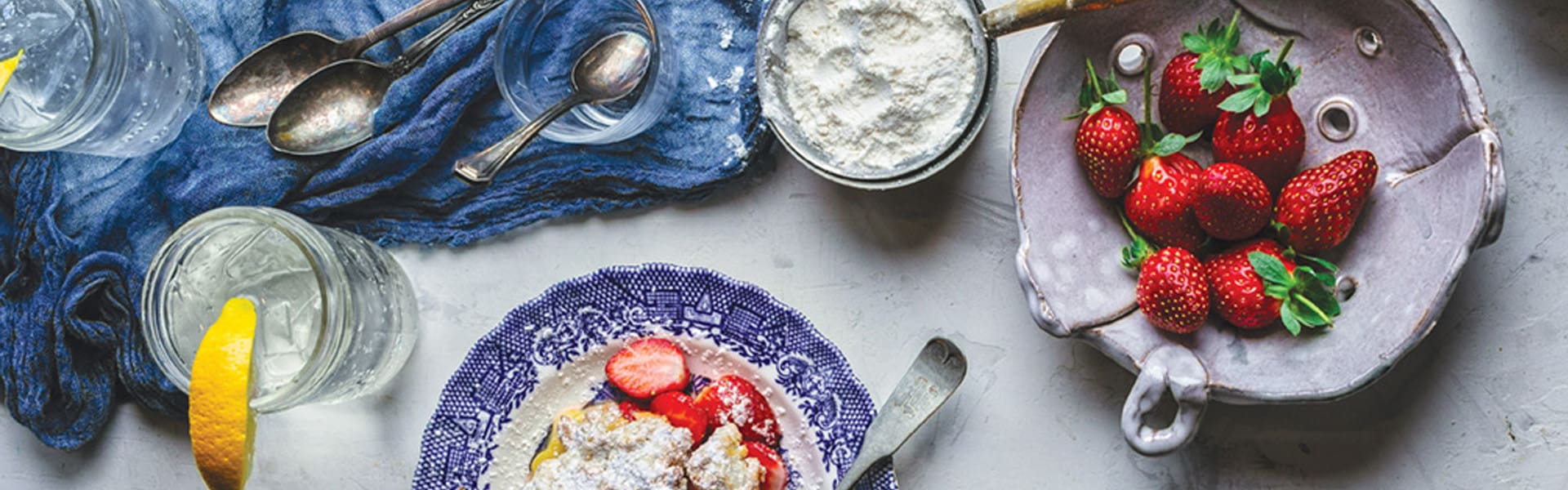 PREPARATION: To assemble, dollop a large spoonful of the lemon cream into serving bowls. Add a spoonful of the macerated berries on top. Top with the warm biscuit crumbles and dust with powdered sugar. Finish each dessert with a dollop of the remaining whipped cream.