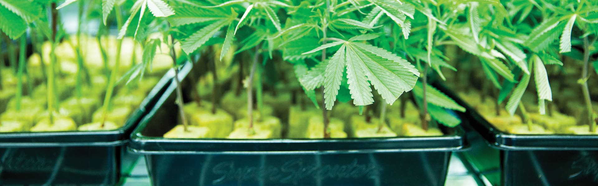 Not long after pulling into the parking lot of a revamped old furniture warehouse—the kind of site so nondescript it evaporates from view—I passed through a security checkpoint and donned a blue disposable lab coat. After wiping my shoes on a wet rubber mat, I stepped into one of multiple hangarlike spaces packed wall-to-wall with budding bright green cannabis plants. The crops luxuriated under an extensive lighting system, with their telltale feathered leaves and urgent, sweet aroma wafting off of purple-and-orange, trichome-specked flowers.