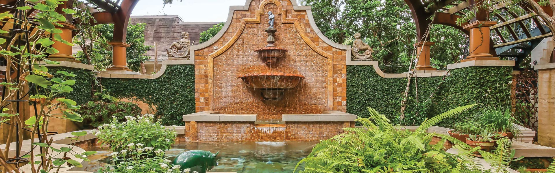 The historic Morrison House, originally built in 1885 and lovingly restored to maintain the harmonious balance of old-school charm and modern-day function, is a creamy four-bedroom, five-bathroom brick house on half an acre. The 6,300-square-foot home’s beguiling exterior includes white trim, elongated windows, and a graphic, bold red brick pathway that complements the red tile roof. On the inside, sunshine pours in, and the spaces feel current and bright thanks to pastel-painted walls, gorgeous white crown moldings, coffered ceilings, and white marble floors and countertops. One of the most fun features is the dark wood built-in library bookcase with a sliding ladder, creating a perfect reading room. Another winning space is the master bathroom, with mahogany vanities, a clawfoot soaker tub and painted tin ceiling panels. The kitchen also features vintage ceiling tiles, installed above a beautifully renovated entertaining space. The sleek pool and gorgeous patio provide a private oasis and outdoor dining area.