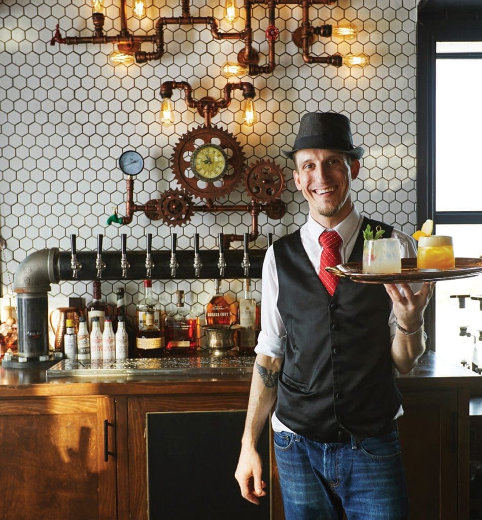 When guests first enter this nostalgic cocktail room, dimly lit by vintage street lamps, it isn’t clear whether they’ve stepped into the 1980s or the 1800s. The sleek black marble countertops, velvet fabrics and gold accents give a distinctly modern feel to this storied space. Built in 1884, the building originally functioned as a laboratory for the state’s chemist, Norman Robinson. Today, it serves as the historical backdrop and inspiration for this swanky new Orlando hot spot. Owner Daniel Mawardi goes beyond shaking and stirring to carefully craft innovative drinks, using a centrifuge to infuse liquor with unexpected flavors and create imaginative combinations, like apricot bourbon and banana fernet. Sink into one of their plush couches and order the crowd-pleasing Just To Be Clear gin-based cocktail or, if you’re feeling adventurous, give the boozy Rum Fashioned a go. Eco-conscious revelers can enjoy their beverages guilt-free knowing The Robinson operates with sustainability in mind. This means limiting their waste and using all pieces of the produce in their cocktails. therobinsonroom.com