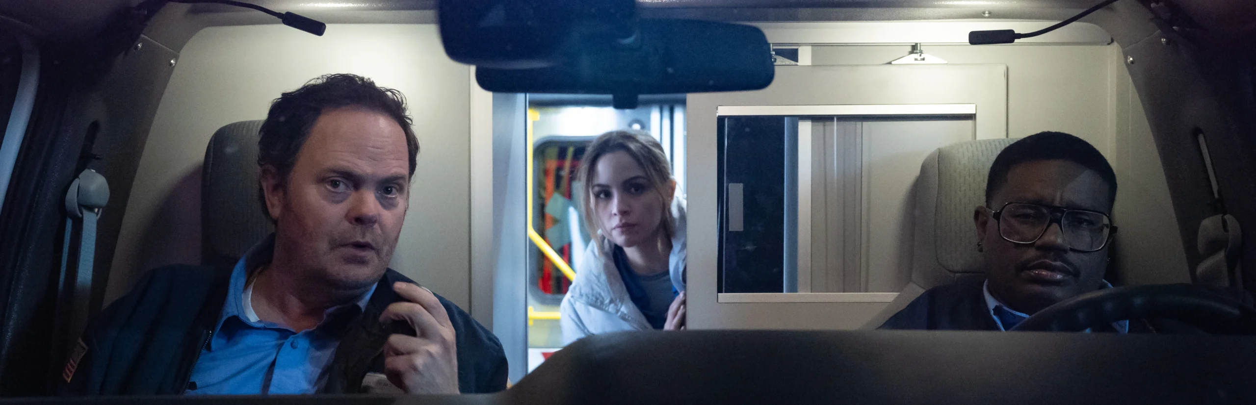 Carrero quickly got over these concerns. Initially intending to go for just two hours, she found the experience so exhilarating that she ended up riding with the paramedics for their entire 12-hour shift. It proved invaluable for her work in “Code 3,” which follows the 24-hour shift of the exhausted and overworked paramedic Randy (Rainn Wilson) as he trains Jessica (Carrero) to replace him before he quits. “It’s such an intimate thing to go into people’s homes, especially when it could be one of the worst days of their lives,” explains Carrero, who recalls seeing an allergic reaction, a dog bite and people suffering from epilepsy, diabetes and struggling with their mental health. Her main aim throughout was to just not got in the way, though.