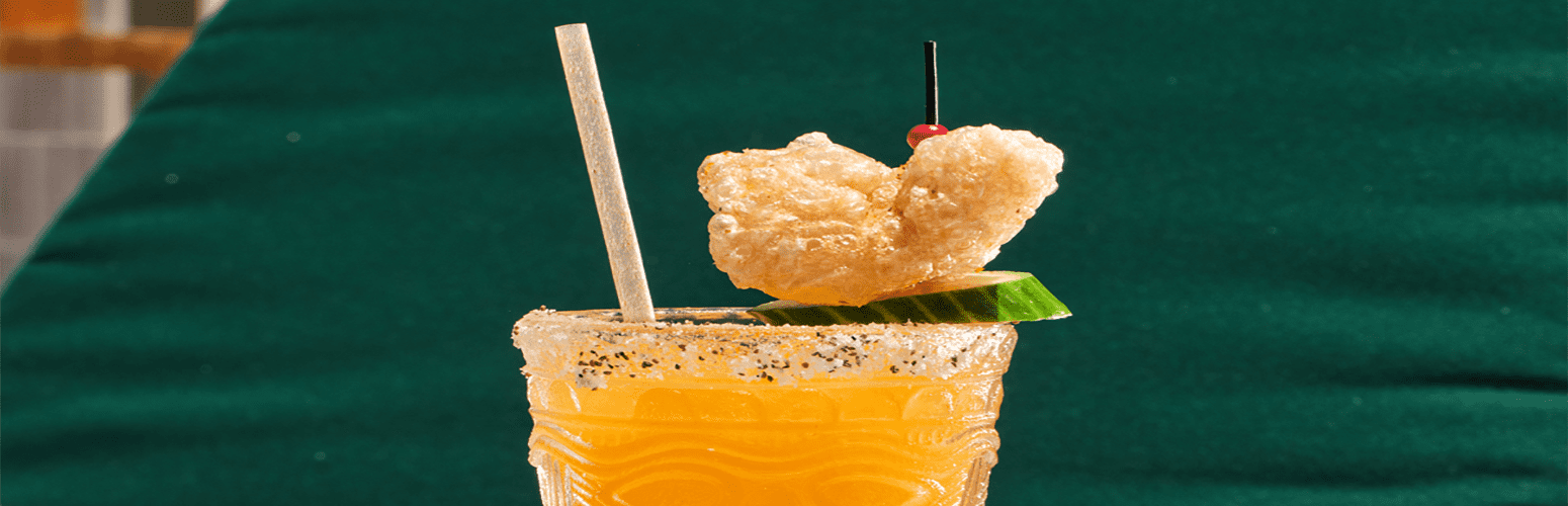 Each day the culinary team fries pork skins to crunchy perfection, tossing them in proprietary seasoning. A cucumber crisp and celery-salt rim add a refreshing, savory finish. Ladner describes it as “the hearty, garnish-driven drama of a bloody mary with the bright, spirit-forward lift of a classic margarita.”