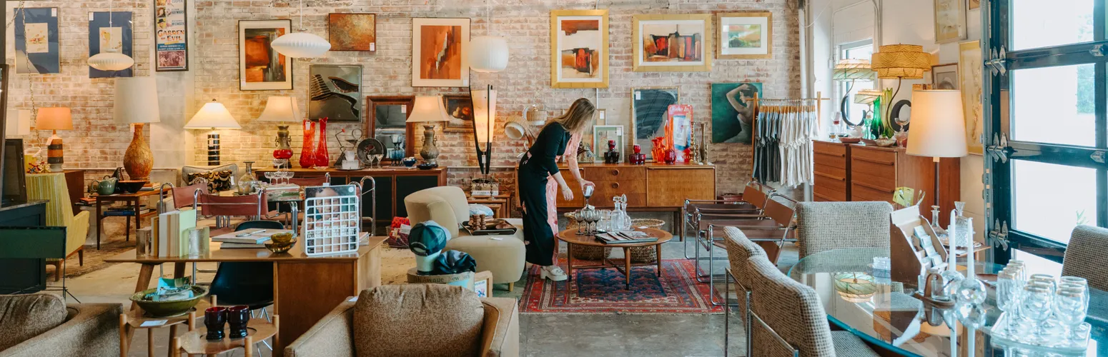 Skelding’s love for vintage midcentury design didn’t waver, but her fixations within that scope did evolve from clothing to furniture. Seven years after starting Curio, Skelding opened the first location of Rare Bird Interiors next door. Customers could jump between vibrant vintage vetements in one storefront to stately ’60s sectionals just a few steps away. Tallahassee quickly embraced Skelding’s elevated eye for interior design. The entrepreneur opened Rare Bird’s second location in a white brick building in Midtown just two years later.