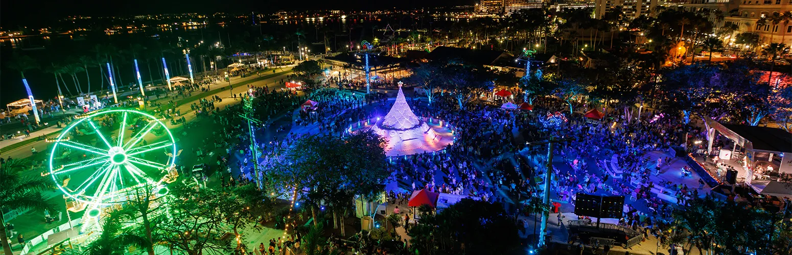 ’Tis the season in the Sunshine State! Here’s our guide to vibrant, statewide soirees including sand-sculpted pines, jumbo shrimp and race cars ringing in the season—no reindeer required.